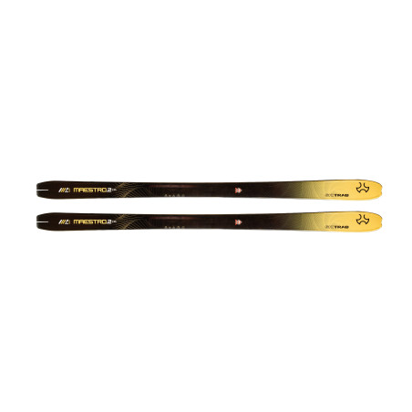 Narty Maestro 2 to nowa wersja nart Ski Trab Maestro. To idealne narty skiturowe zarówno dla osób uprawiających skituring przy trasach narciarskich, jak i wybierających bardziej wymagający teren wysokogórski. Narta jest tradycyjnie zbudowana z 14 warstw, z rdzeniem aramidowym. Kształt i profil zostały zaktualizowane. Ski Trab dodał trochę rockera, poszerzył i wydłużył przód o 39% oraz tył narty o 100% w stosunku do poprzednich modeli. Zmienił także jej elastyczność, dzięki czemu inicjacja skrętu jest łatwiejsza. Wprowadził system NoShock- narty zostały wyposażone w warstwę elastomeru, która znajduje się między krawędzią a materiałem rdzenia w celu pochłaniania wibracji. Zachował warstwę Attivo Shock Absorber, biegnącą wzdłuż narty i pochłaniającą wibracje, co zapobiega drganiom na nartach, a także chronią rdzeń przed uszkodzeniami zewnętrznymi.Dzięki konstrukcji Hiconnect narty zostały usztywnione. Jazda na nich z większą prędkością jest bardziej stabilna. Stalowe krawędzie HRC 52 naostrzone na 89° Trzyletnia gwarancja Wyprodukowano w Bormio we Włoszech. Waga: 925gr. (przy dł. 164cm) Taliowanie: 108-78-94.