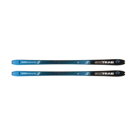W zestawie topowe narty zawodnicze z rdzeniem aramidowym, wiązania Ski Trab Gara Titan i komplet zawodniczych fok z zaczepem przednim Colltex Race